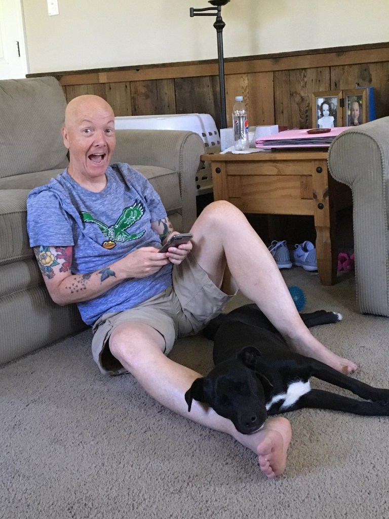 My husband, Mike, was cleaning up the area just behind the fence in our backyard. This was not an easy feat. It required walking through tall weeds to get to there, then maintaining balance on about a 1 ½ foot wide space on top of a retaining wall, while using an ax and a saw to destroy thorny bushes and weeds that were invading our yard through our back fence.