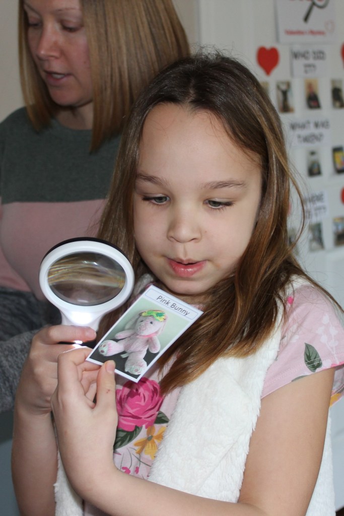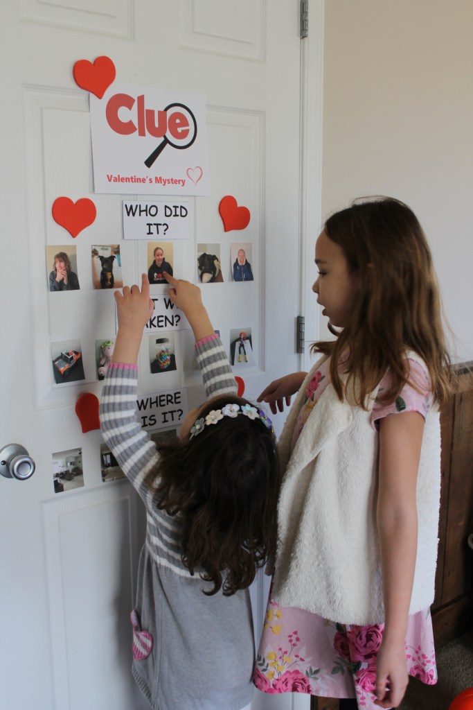 Since some were asking for details on this fun event, I figured I’d share them here. I’d encourage anyone with young children in their lives to try this. You can also adapt it for older children. Our granddaughters are already excited for next years’ Valentine’s Mystery!