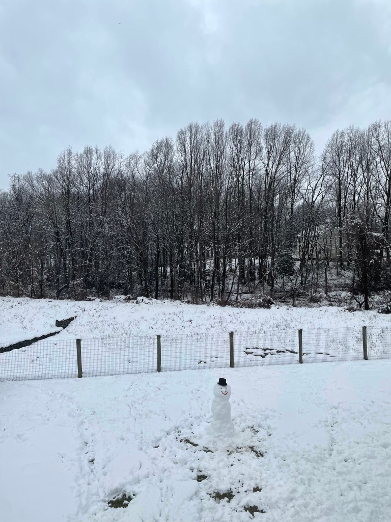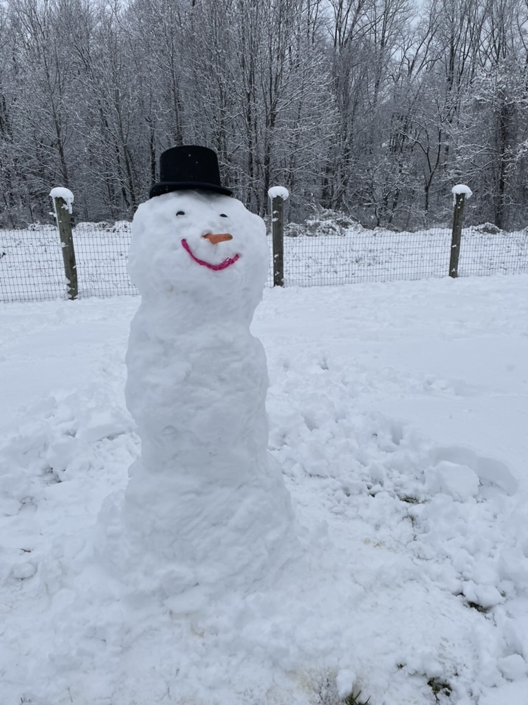 It was too good to resist. The snow was perfect for snowman building, so I began rolling a big ball for the base. Before I finished my husband joined in and found a hat for him. A day later he was gone.